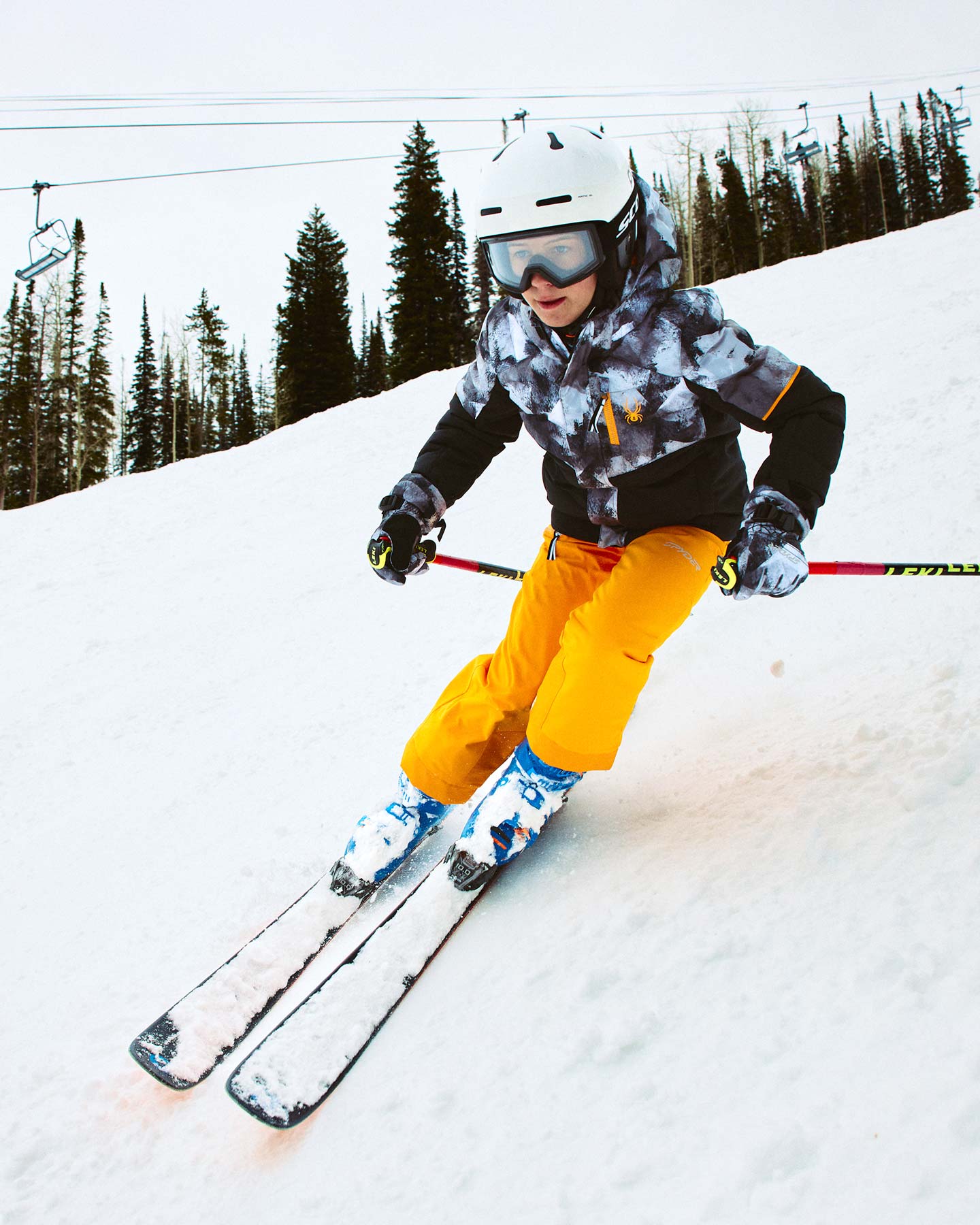 Rugged enough for everyday wear, the Impulse Synthetic Down Jacket looks sharp while supporting adventure from the slopes to the schoolyard. Its removable hood with gaiter, fixed powder skirt with snaps and gripper elastic, and adjustable cuff tabs and stretch cuffs with thumb holes keep things warm, while set-in sleeves and stretch weave fabric keeps a young mover in motion. Now featuring an EXO SHIELD 10k stretch polyester outer shell, just like our adult jackets.