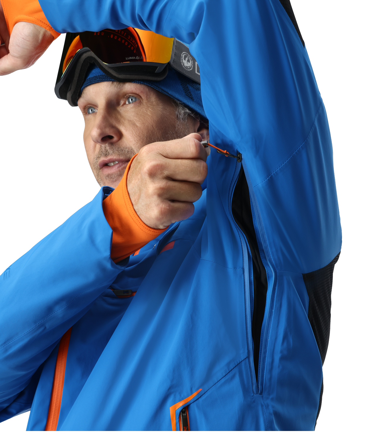 - Underarm ventilation system with YKK® AquaGuard® zippers