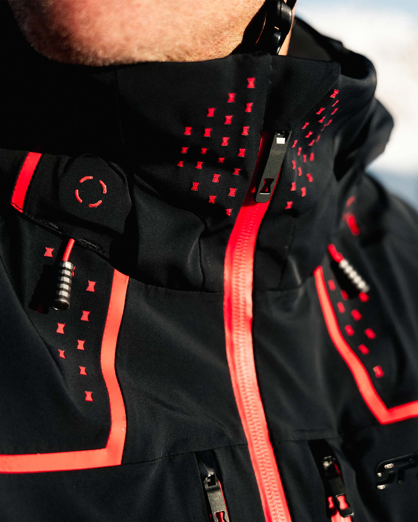 - Internal data card pocket under right sleeve cuff zipper