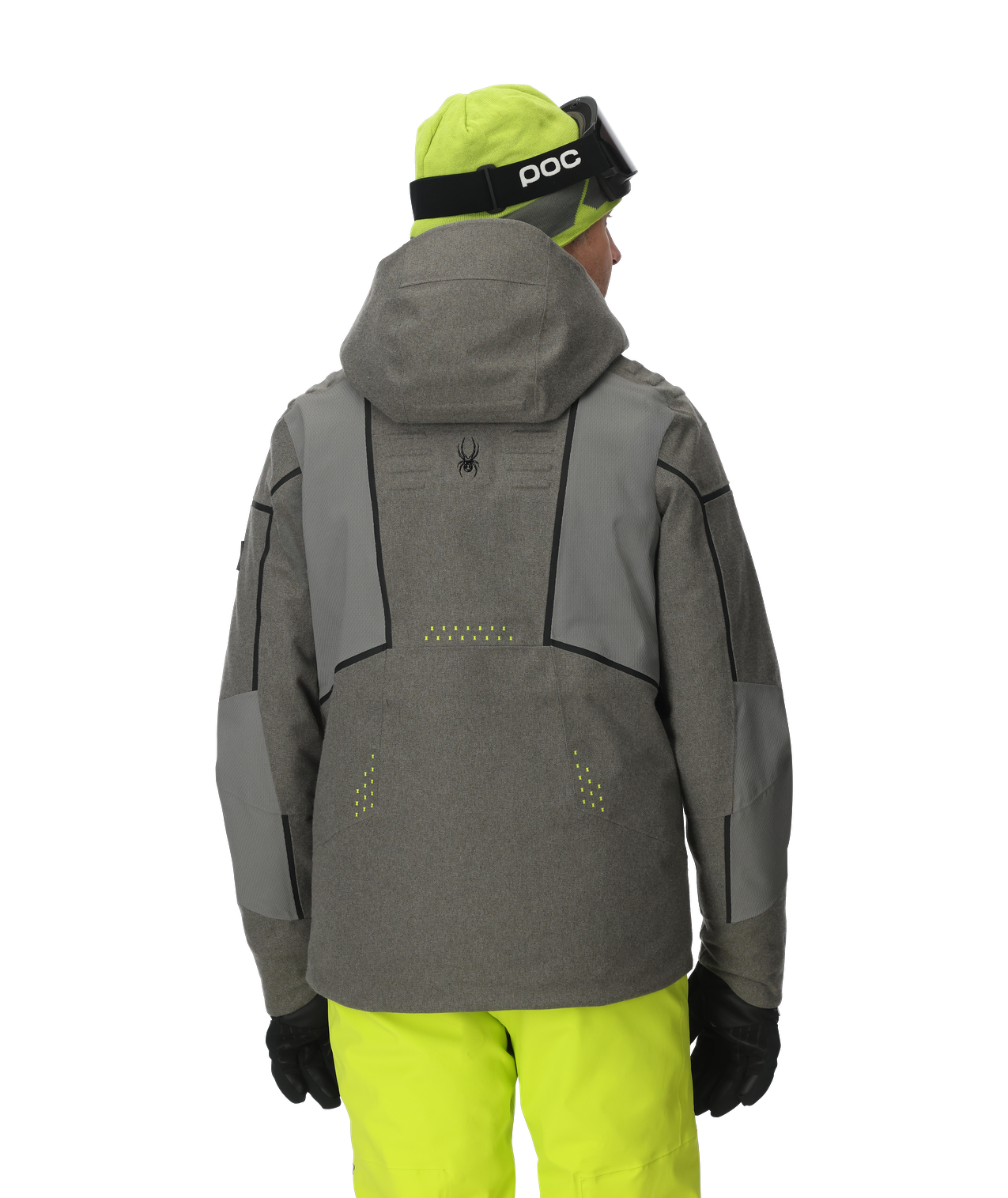 Experience engineered elegance and technical excellence. The Pinnacle is a perennial favorite, and we continue to innovate this premier ski jacket. The body fabric features EXO SHIELD 30K, a proprietary Spyder fabric boasting 30K/25K waterproofing/breathability and 4-way stretch for freedom of movement. Filled with 60 grams of synthetic down PrimaLoft® Gold ECO insulation in the core enhance warmth and prevent cold spots. Easily accessed waterproof core ventilation zippers allow you to dump heat quickly in high-output moments. Two-way high-stretch panels on the back and shoulders and a full-stretch interior provide unparalleled mobility. The Pinnacle features waterproof YKK® AquaGuard® zippers, fully taped seams, an adjustable and removable hood, a powder skirt, and RECCO® Avalanche Rescue System.