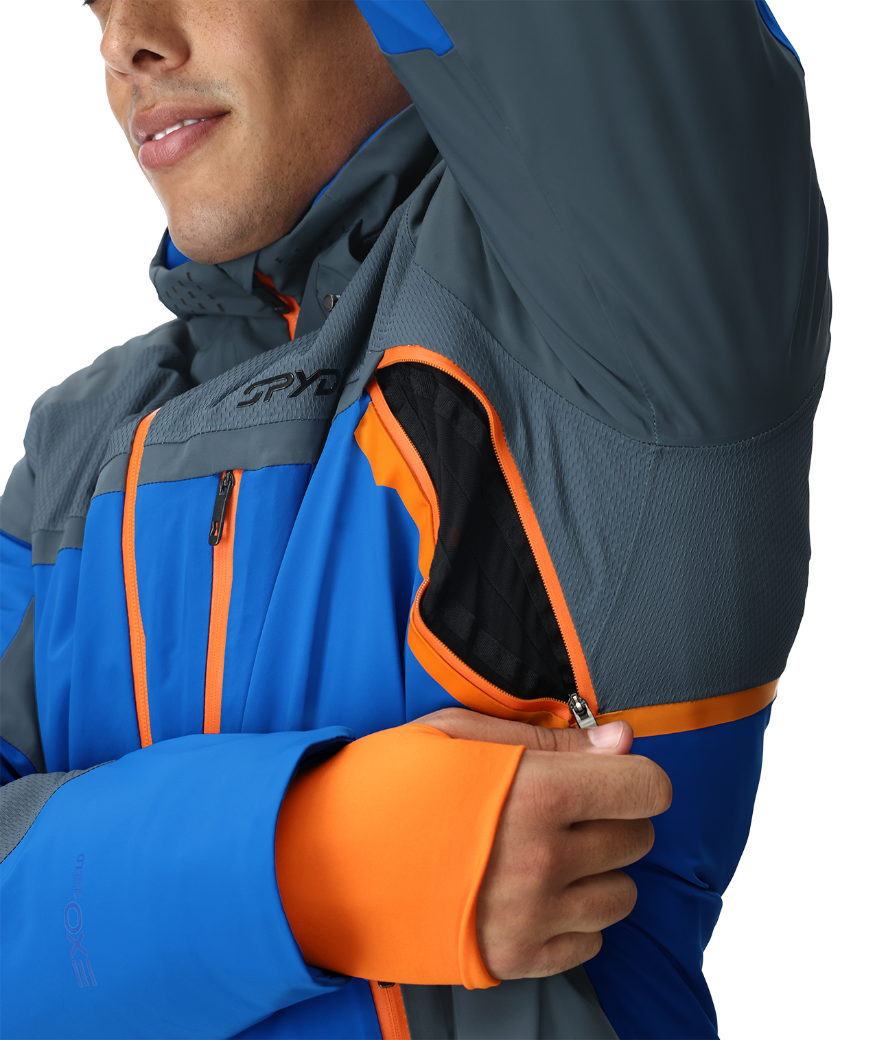 The Vanqysh is one of our best sellers, consistently chosen by discerning skiers for its exceptional performance. Crafted to meet the demands of serious skiers, it features EXO SHIELD 30K, a proprietary Spyder fabric boasting 30K/30K waterproofing/breathability and 4-way stretch for unparalleled freedom of movement. PrimaLoft® Silver insulation (100g) makes the Vanqysh one of the warmer jackets in our line. Waterproof core ventilation zippers allow you to dump heat rapidly in high-output situations. Honoring Spyder's esteemed alpine heritage, the Vanqysh remains a coveted piece in every wardrobe.